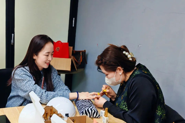 美甲师现场示范,并指导参与者进行简单的美甲操作,学习美甲技巧,体验美甲乐趣,提升个人形象,展现女性魅力。
