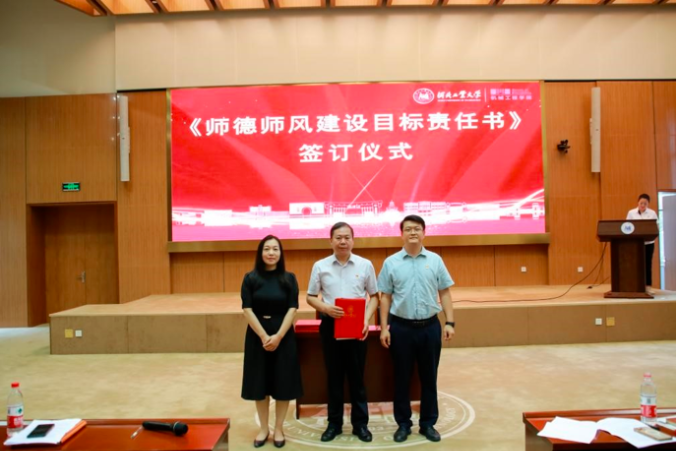 紧接着,召开了机械工程lejing乐竞体育(中国)官方网站-登录入口全体教职工大会。会上,举行了《师德师风建设目标责任书》签订仪式,由各系党支部书记作为代表签字,全体教职工郑重承诺严格遵守师德规范,不断提升育人水平。随后,各系主任就本学期的工作进行了总结,并对下学期的工作计划进行了详细汇报。