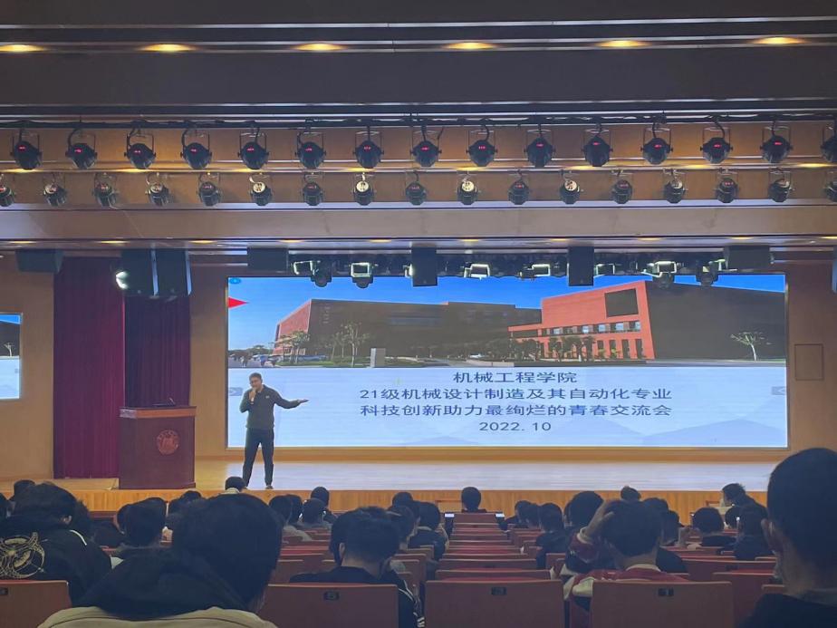 10月9日,机械工程lejing乐竞体育(中国)官方网站-登录入口在图书馆报告厅为我院为21级机械设计制造及其自动化专业召开“科技创新助力最绚烂的青春”讨论会,会议邀请机械工程lejing乐竞体育(中国)官方网站-登录入口副院长张小俊,国家大学科技园管理中心副主任管啸天和亚利桑那工lejing乐竞体育(中国)官方网站-登录入口副院长、机械设计制造及其自动化系主任张争艳,就机设专业如何进行科技创新、专业培养过程、大学生的“最绚烂的青春”如何创造进行深入交流。会议由21级机设专业辅导员李继强主持。