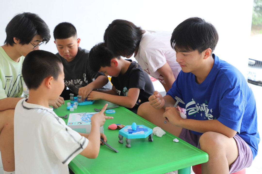 在实践环节中,团队设计了一系列既有趣又富有教育意义的活动。通过“传表情猜词游戏” “木头人” “益智棋”等心理减压游戏,帮助青少年在欢笑中学会了如何释放压力,同时,篮球、羽毛球等趣味运动则让他们在汗水与欢笑中体验到团队合作的乐趣。这些活动不仅帮助青少年们在轻松愉快的氛围中实现了心理“充电”,更在团队合作与互动中增强了彼此之间的友谊,构建了积极向上的社交环境。