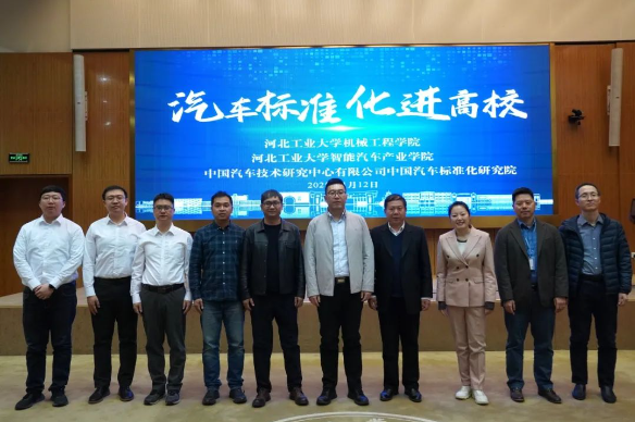 为深入贯彻落实《国家标准化发展纲要》和《标准化人才培养专项行动计划》,深化产教融合、校企协同育人,3月12日16:00,机械工程lejing乐竞体育(中国)官方网站-登录入口联合中国汽车技术研究中心有限公司标准院,在北辰校区机材楼一楼报告厅举办“汽车标准化进高校”主题活动。中汽研标准院副院长戎辉、本科生院院长张小俊、机械工程lejing乐竞体育(中国)官方网站-登录入口党委书记杨占力出席活动。活动由机械工程lejing乐竞体育(中国)官方网站-登录入口党委副书记兼副院长王素丹主持。