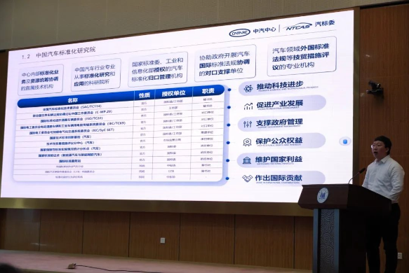 中汽研标准院戎辉副院长在讲话中提到:标准在支撑和服务我国汽车产业发展中发挥了重要作用,国家将标准化提升到全新高度,电动化、智能化、网联化、共享化等新四化加快演进,对汽车标准化工作提出了新的挑战。标准院立足汽车产业实际,持续深化校企合作,创新标准化人才培养模式,策划汽车标准化走进校园公益活动,带动高校学子了解汽车标准化并积极参与标准化实践,为我国汽车产业发展储备年轻力量。