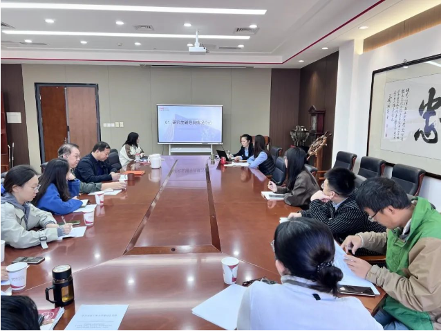 胡文琳老师介绍了专职辅导员目前的带班情况和专项工作情况;段明洋老师就学校研究生管理相关文件进行详细解读,进一步明确了导学团队兼职辅导员的工作内容;张晨露老师介绍了研究生党支部的基本情况;研究生导学团队兼职辅导员依次交流了团队研究生管理工作中遇到的问题、经验和做法并就实际案例在会上进行讨论交流。