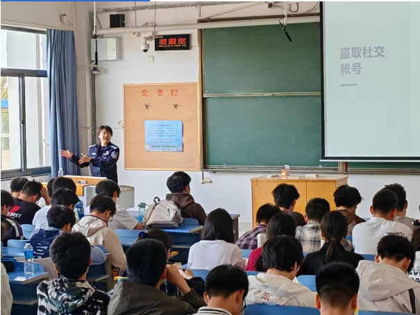 讲座过程中,陈玥警官凭借丰富的实战经验,通过大量真实案例,深入浅出地剖析了当前电信诈骗的常见手段和特点。从 “冒充公检法诈骗” 到 “网络刷单诈骗”,再到 “熟人求援” 等,每一类诈骗形式都配以生动的案例展示,揭露诈骗分子如何利用学生求职需求、社交习惯及技术漏洞实施犯罪,让学生们直观地感受到电信诈骗的狡猾与危害。并强调,要务必牢记 “不听、不信、不转账” 的原则,同时提醒同学们要保护好个人隐私信息,避免在网络上随意透露身份证号、银行卡号等重要信息,不给诈骗分子可乘之机。