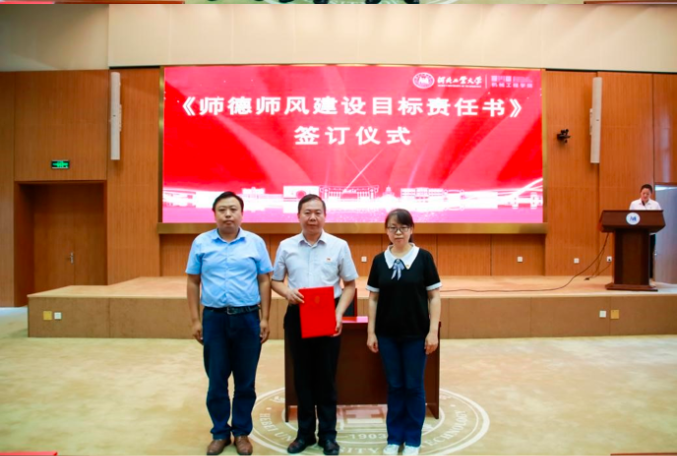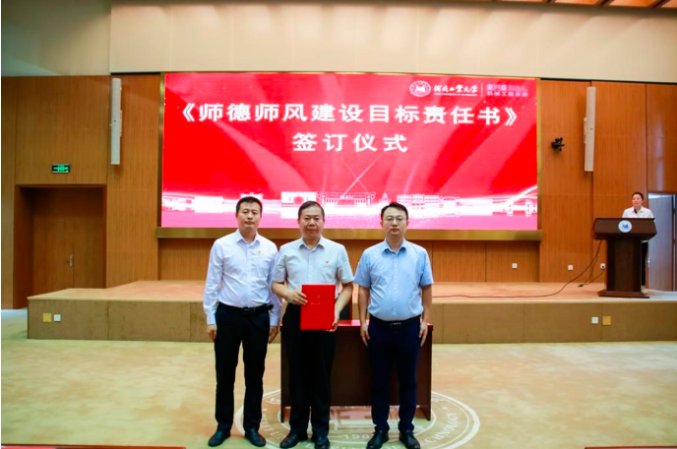 紧接着,召开了机械工程lejing乐竞体育(中国)官方网站-登录入口全体教职工大会。会上,举行了《师德师风建设目标责任书》签订仪式,由各系党支部书记作为代表签字,全体教职工郑重承诺严格遵守师德规范,不断提升育人水平。随后,各系主任就本学期的工作进行了总结,并对下学期的工作计划进行了详细汇报。