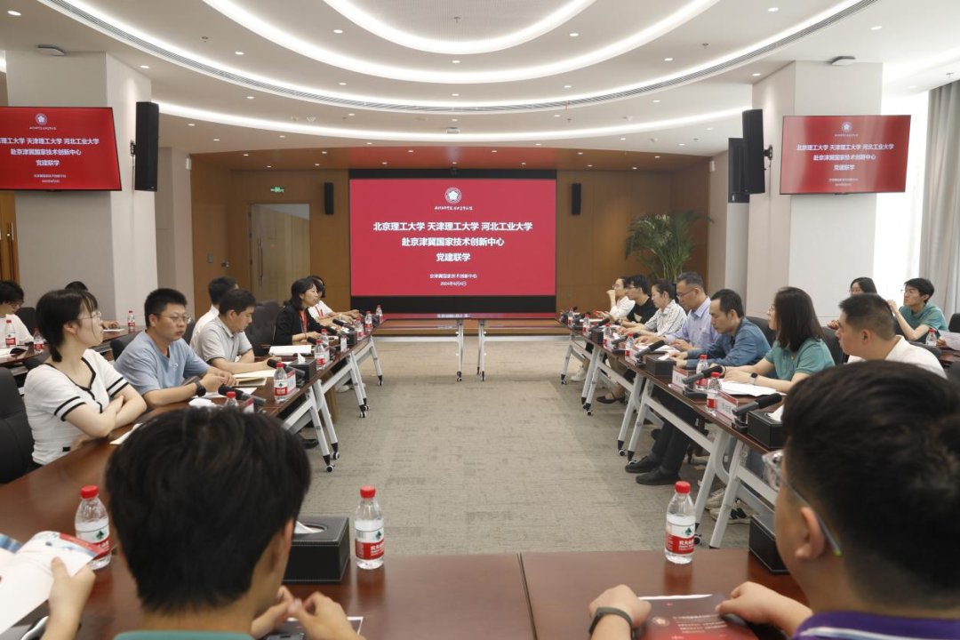 京津冀国家技术创新中心党总支书记、助理主任刘杨热情接待了联盟一行并召开座谈会。会上,各高校党支部书记介绍了党支部基本情况和近年来的研究成果;“理河延锋”联盟负责人对联盟创立背景、运行机制、工作成果展以及存在问题及发展前景进行了介绍;京津冀国家技术创新中心相关负责人介绍了京津冀协同发展和产学研工作情况;三所高校代表分别介绍了科研成果和技术转化情况。