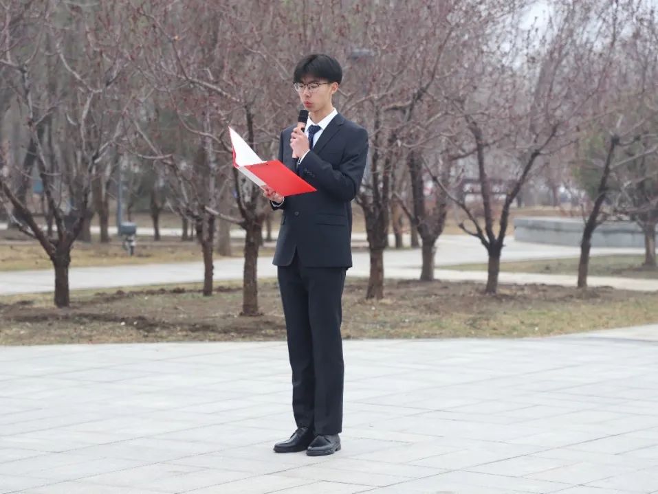 接着,学生代表力学231班张天灏同学发言。他表达了目睹国旗冉冉升起的骄傲自豪以及对祖国蓬勃发展的诚挚祝愿。“千川汇海阔,风声好扬帆”,他号召同学们勇担青年学生的责任与使命,将爱国热情内化到具体行动中,努力成为堪当民族复兴大任的时代新人。