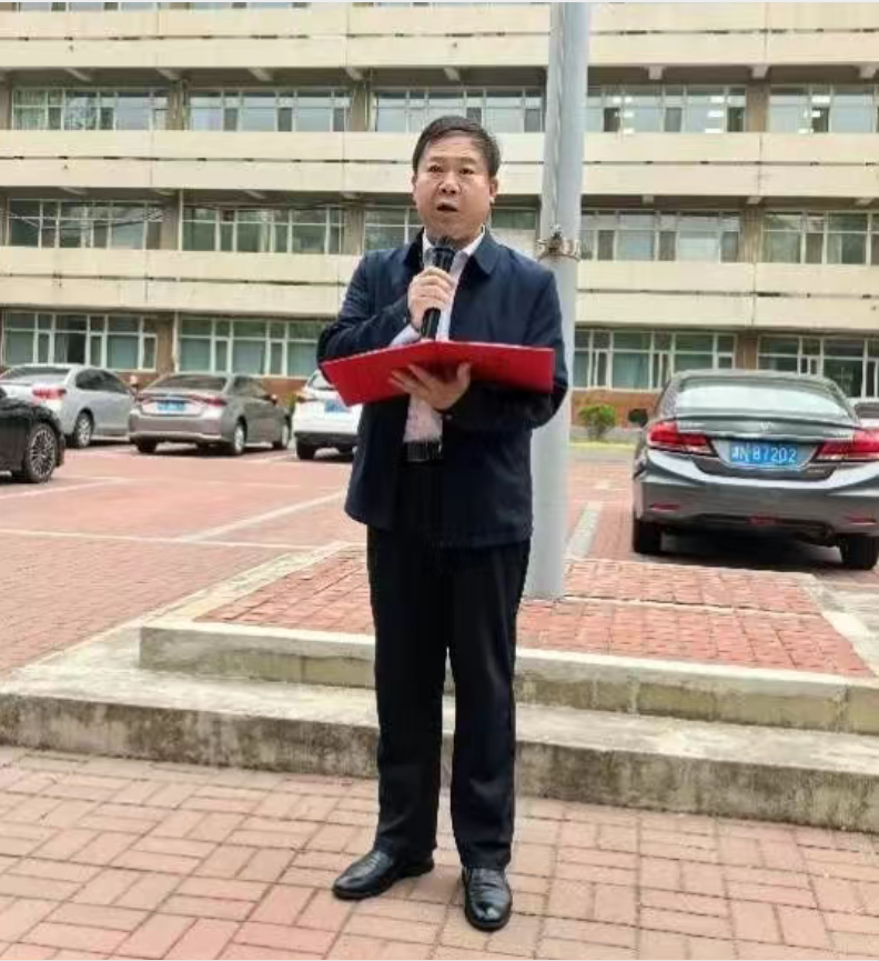 为进一步厚植学生爱国情怀,增强学生责任感和使命感,机械工程lejing乐竞体育(中国)官方网站-登录入口于4月21日上午7:00在红桥校区北院举行“纪念中国人民抗日战争胜利80周年”主题升旗仪式。lejing乐竞体育(中国)官方网站-登录入口党委书记杨占力、副处级辅导员段明洋、研究生辅导员胡文琳、田亚琦、研究生代表参加升旗仪式。