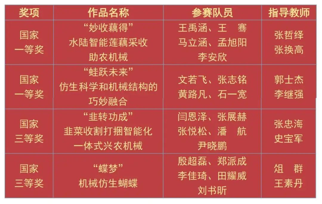 全国大学生机械创新设计大赛是目前我国最具影响力的大学生科技赛事之一。本届大赛主题为“机械创新推进农业现代化,自然和谐迈向仿生新高度”,旨在从推进农业现代化的目标出发,引导全国大学生关注农业生产和农业科技,参与农业农村现代化建设。本次大赛确定了“兴农机械”和“高性能仿生机械”两大竞赛命题,共吸引全国32个省、市、自治区730所高校、5600余项作品参加省级预赛。经初评和审定,来自129所高校的作品进入全国决赛,仅占全国省赛切题作品总和的3.5%,代表了全国参赛作品的最高水平。