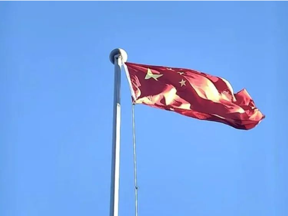 伴随着雄伟的国歌声,蓝天国旗护卫队迈着矫健的步伐,将五星红旗冉冉升起。