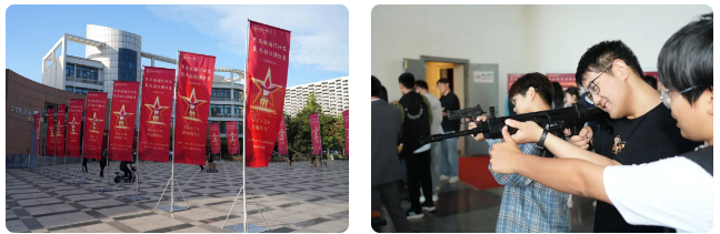 主题演讲比赛同期,在大学生活动中心大厅开展了校国防教育成果展和武器装备模型展示,吸引了大量学生驻足观看。