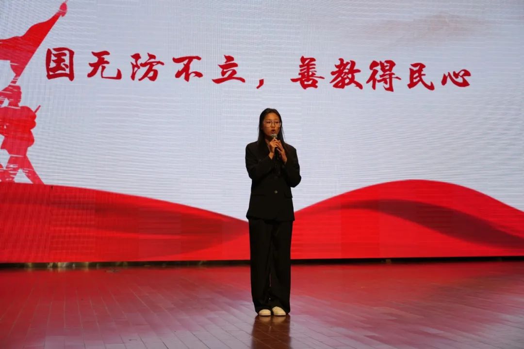 作为我校积极推进大中小学国防教育一体化建设的关键一环,河北工业大学附属红桥中学的师生代表莅临比赛现场,并带来了诗朗诵《我爱你中国》。充满青春朝气的朗诵展现了青年学生蓬勃向上的精神风貌,为比赛拉开了序幕。