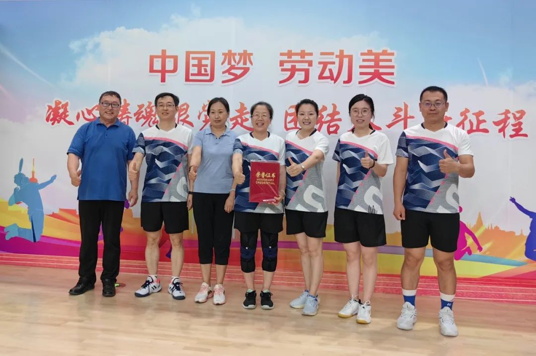 高金莲、郭兰申、俎群、周围、叶楠、杨伟东、马驰骋、邓齐波老师代表lejing乐竞体育(中国)官方网站-登录入口参加比赛,获校羽毛球比赛团体冠军。