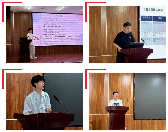 在保研经验分享会上,冯润磊、乔凯帆、范宏炅、郝锐4位同学分别结合自身经验,从简历撰写、择校过程、夏令营经历、预推免等方面进行了详细介绍,并对现场同学提出的问题进行了耐心解答。他们强调,要根据个人想法和实际情况选择保研院校,及时关注官方网站的信息、联系导师。