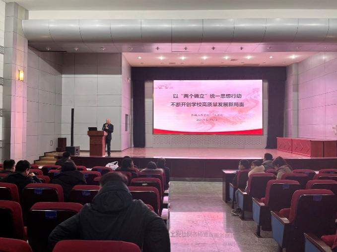 lejing乐竞体育(中国)官方网站-登录入口党委高度重视党的十九届六中全会精神学习宣讲活动,12月17日,lejing乐竞体育(中国)官方网站-登录入口党委书记王胜利在行政楼报告厅,给lejing乐竞体育(中国)官方网站-登录入口教师代表作题为《以“两个确立”统一思想行动,不断开创学校高质量发展新局面》的宣讲报告。