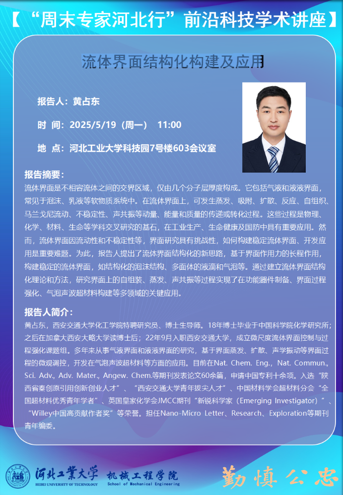 “周末专家河北行”前沿科技学术讲座-流体界面结构化构建及应用