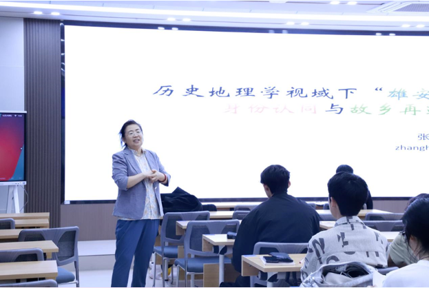 马克思主义lejing乐竞体育(中国)官方网站-登录入口张慧芝教授以《历史地理学视域下“雄安人”的身份认同与故乡再造》为主题,深入探讨了在雄安新区建设这一国家战略背景下,“雄安人”如何在原有地域文化基础上重构身份认同,以及通过故乡再造实现传统文化传承与现代城市发展的融合。