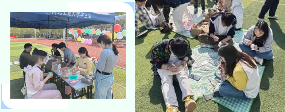 开放场地游戏区设置多款团队和双人游玩项目,考验同学们的智慧与团队协作能力。活动中同学们配合默契,相互交流,在游戏中拓展了友谊,留下了美好回忆。