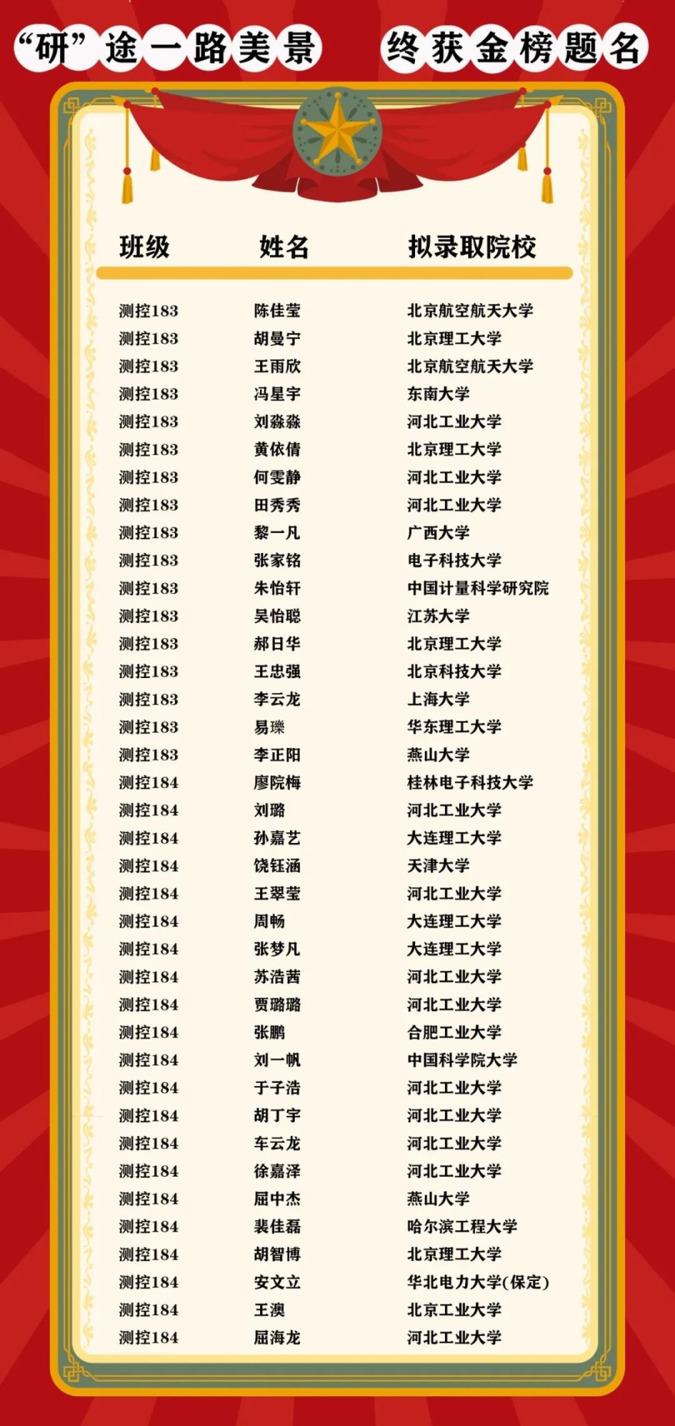 考研是一场逆流而上的旅行,是一次孤独的朝圣。目及朝霞,身披星光,昼夜兼程,四年的朝朝暮暮换来一朝金榜题名。今年机械工程lejing乐竞体育(中国)官方网站-登录入口再创佳绩、喜报连连,让我们一起恭喜这 名考(保)研学子成功上岸!